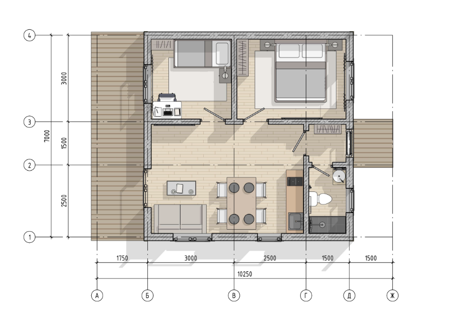 ✓ Создание естественного микроклимата внутри помещения благодаря гигроскопичности дерева. В большинстве случаев, отсутствует необходимость в монтаже принудительной вентиляции;