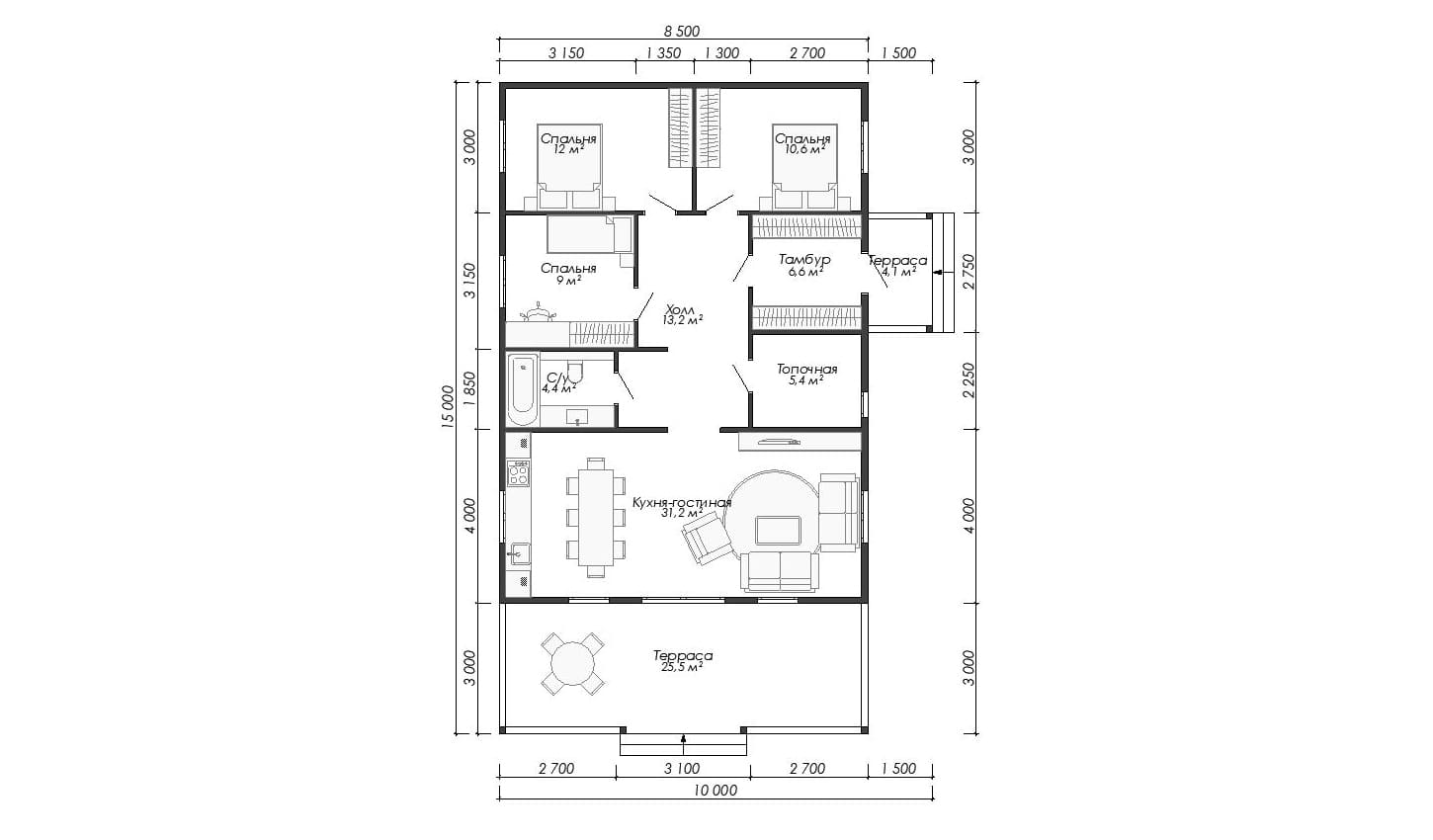 ✓ Создание естественного микроклимата внутри помещения благодаря гигроскопичности дерева. В большинстве случаев, отсутствует необходимость в монтаже принудительной вентиляции;